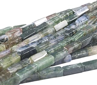 Beads Ok, Perles Pierre Semi précieuse Agate Mousse Grade A Naturelle Véritable Quadrilatère Prisme 4x4x13mm ~38cm un Fil. Vendu par Fil. Quardrilateral Prism A grade Natural Moss Agate Gemstone Bead