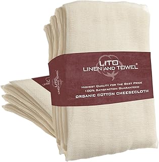Lin et serviette en étamine bio non blanchie Grade 90 Pieds carrés Lot de 2 passoires réutilisables Ultra Fine pour la cuisson – Sac à lait de noix Filtre (Grade 90–4 Yards) 4 square yards Grade 50