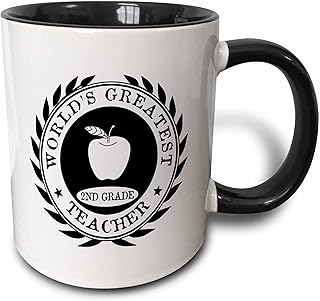 3dRose Mug 165015 _ 4 World's Greatest 2 ND Grade Teacher Award Seconde Grade 2 Thank You Cadeau Deux Tons Noir Mug, 311,8 Gram, Noir/Blanc