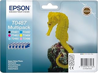 Epson - Multipack - Pack composé de 6 cartouches séparées : T0481 Noir - T0482 Cyan - T0483 Magenta - T0484 Jaune - T0485 Cyan Clair - T0486 Magenta Clair - Compatible Epson Stylus Photo R200/R300/RX500/RX600/RX620