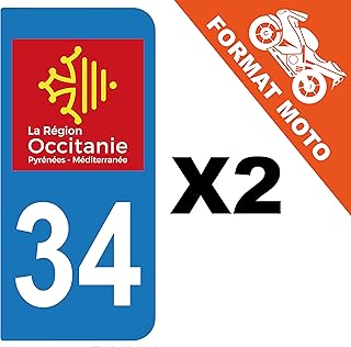 supstick 2 Stickers Autocollant Plaque IMMATRICULATION Moto DEPARTEMENT 34 Hérault Région OCCITANIE
