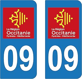 SupStick 2 STICKERS AUTOCOLLANT PLAQUE IMMATRICULATION DEPARTEMENT 09 Ariège REGION OCCITANIE