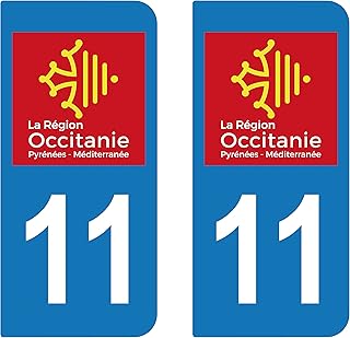 SupStick 2 STICKERS AUTOCOLLANT PLAQUE IMMATRICULATION DEPARTEMENT De l'Aude 11 REGION OCCITANIE