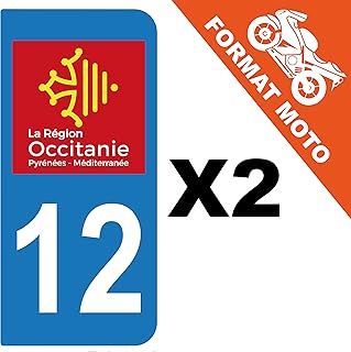 supstick 2 Stickers Autocollant Plaque IMMATRICULATION Moto DEPARTEMENT 12 Region OCCITANIE