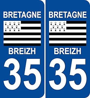 JINTORA - 2 Stickers Autocollant 35 Ile et Vilaine Bretagne Plaque immatriculation département Auto 35 102x46 mm