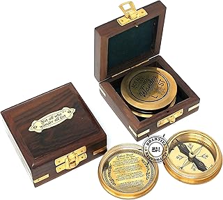 Bhartiya Handicrafts Boussole de poche, boussole en laiton avec étui de transport en bois, boussole de scout, boussole d'aigle, boussole de pirates, boussole de camping, boussole cadeau