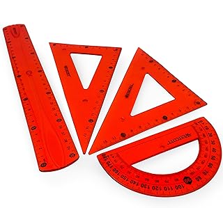 Westcott Translucide incassable pour Règle – Lot de 4 – Comprend 30 cm Règle, 2 Ensemble de carrés et rapporteur – Rouge