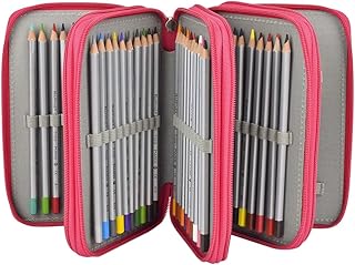 Newcomdigi Sac à Crayon de Toile Sac à Crayon 72 Couleurs Organisateur Crayon Porte-Crayons Grande Capacité Solide Durable Pratique pour Bureau Ecole Art - Rose
