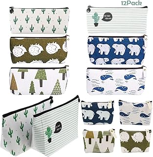 AUHOTA 12Pcs Trousse à Crayon Toile Sac à Stylo, Mignonne Zipper Pochette à Crayon Pen pour étudiant, Porte-Monnaie Petit Maquillage Cosmétiques Sac Trousse Scolaire(3 Tailles, 6 Modèles)