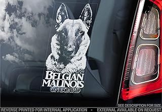 Sticker International Belge Malinois - Autocollant Voiture - Chien Signe Fenêtre, Pare-Choc Autocollant Cadeau - V001 - Blanc/Transparent - Interne Marche Arrière Imprimé, 195x100mm