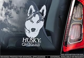 Sticker International Husky - Autocollant Voiture - Sibérien Chien Signe Fenêtre, Pare-Choc Autocollant Cadeau - V001 - Blanc/Transparent - Externe Extérieur Imprimé, 185x100mm
