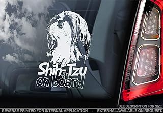 Sticker International Shih Tzu - Autocollant Voiture - Chien Signe Fenêtre, Pare-Choc Autocollant Cadeau - V002 - Blanc/Transparent - Externe Extérieur Imprimé, 165x100mm