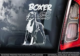 Sticker International Chien Boxer - Autocollant Voiture - Chien Signe Fenêtre, Pare-Choc Autocollant Cadeau - V002 - Blanc/Transparent - Externe Extérieur Imprimé, 185x100mm