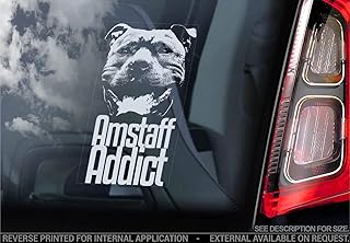 Sticker International Amstaff Addict - Autocollant Voiture - Chien Signe Fenêtre, Pare-Choc Autocollant Cadeau - V001 - Blanc/Transparent - Interne Marche Arrière Imprimé, 180x100mm
