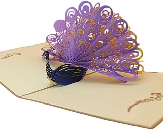 milopon Carte de voeux Pop Up 3D paon Carte blanches pour anniversaire voeux Carte d'anniversaire carte de voeux Invitation Carte ou ausgefallene Carte de mariage avec enveloppe 15*15cm lilas