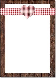 50 Feuilles de papier à lettres motif cœurs et carreaux rouge/blanc-format a4/100 g-papier à lettre de haute qualité au style campagnard rustique.
