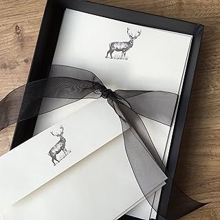 Wagtail Designs Papier à lettre et enveloppes de grande qualité ornés d'un cerf Livré dans un joli coffret noir fermé par un ruban Ivory (Cream)