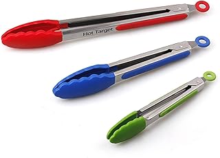 Hot target Set of 3-7, 9, 12 inches, Heavy Duty, Non-Stick, 304 Stainless Steel Silicone BBQ and Kitchen Tongs. Heat Resistant up to 600°F