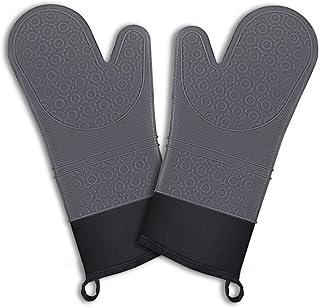 Acmind Silicone Non Slip Oven Mitts Set, Heat Resistant Cooking Gloves Waterproof BBQ Kitchen Oven Mitts with Inner Cotton Layer for Cooking, Baking, Set of 2