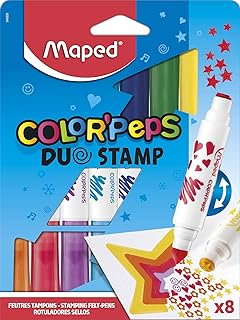 Maped - Feutres Duo Stamp Color'Peps - 8 Feutres Tampons - 1 Pointe Tampon + 1 Pointe Feutre - Conforme à la Réglementation des Jouets - Pochette carton de 8 Feutres Tampons